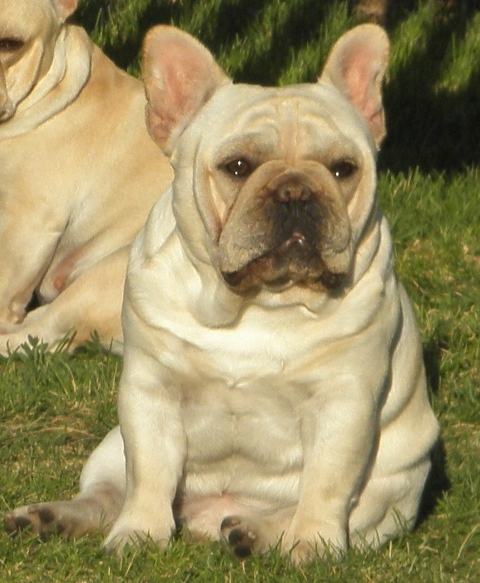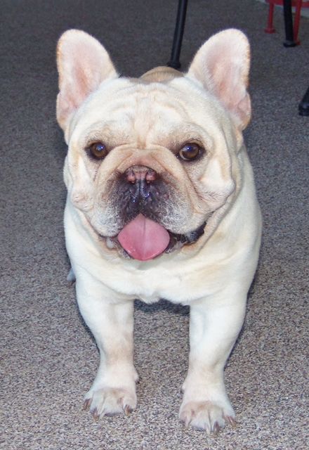 Huck offers many great attributes to his puppies, he is very sound and correct in his conformation, he has very heavy bone, an excellent front with good shoulders and correct movement. He is known for putting a great rear end on his puppies, he has superb rear angulation and drive. Huck's breed type is amazing, he is very bully with great expression. Although Huck has a lot of type, he is also well balanced and has the substance that a great frenchie needs.